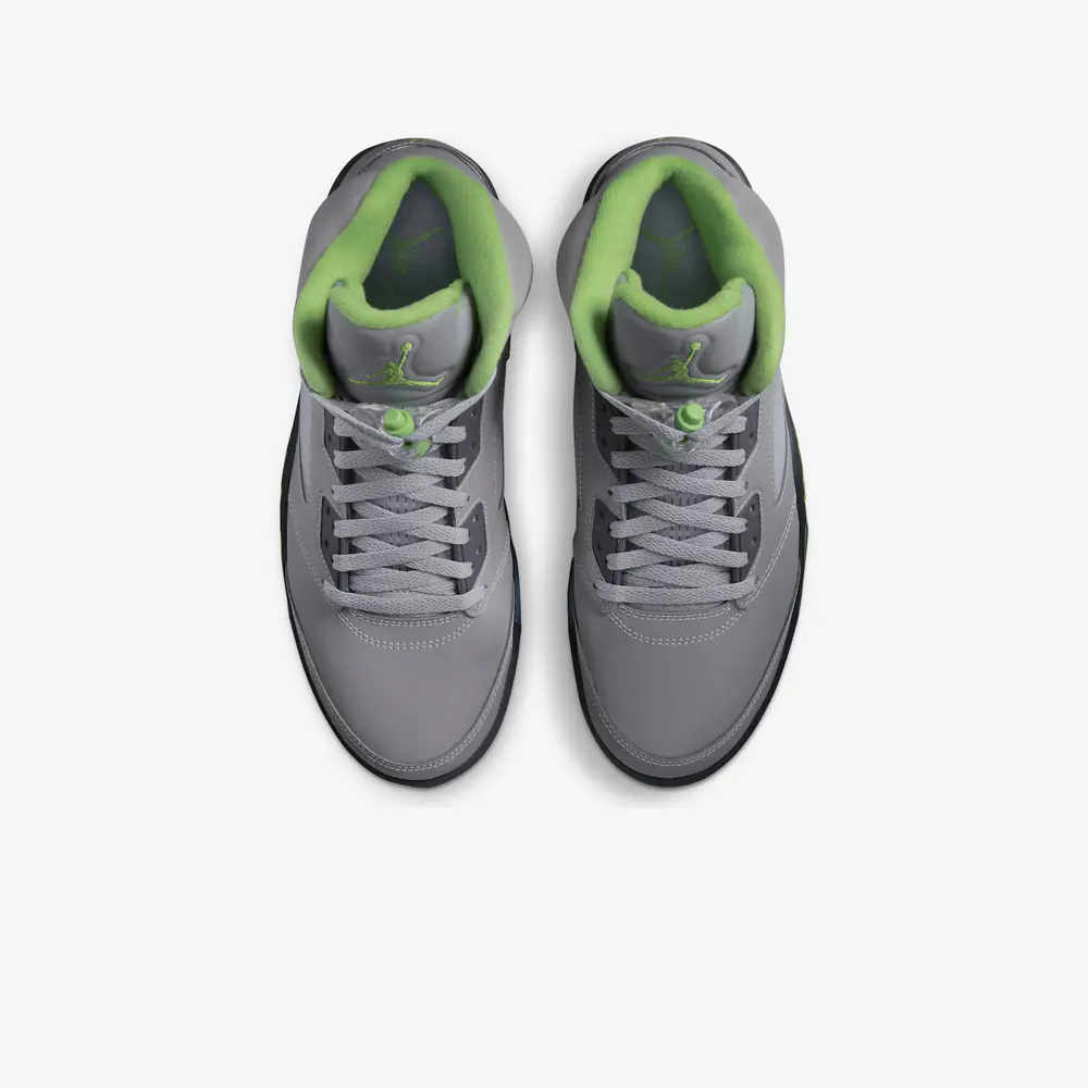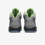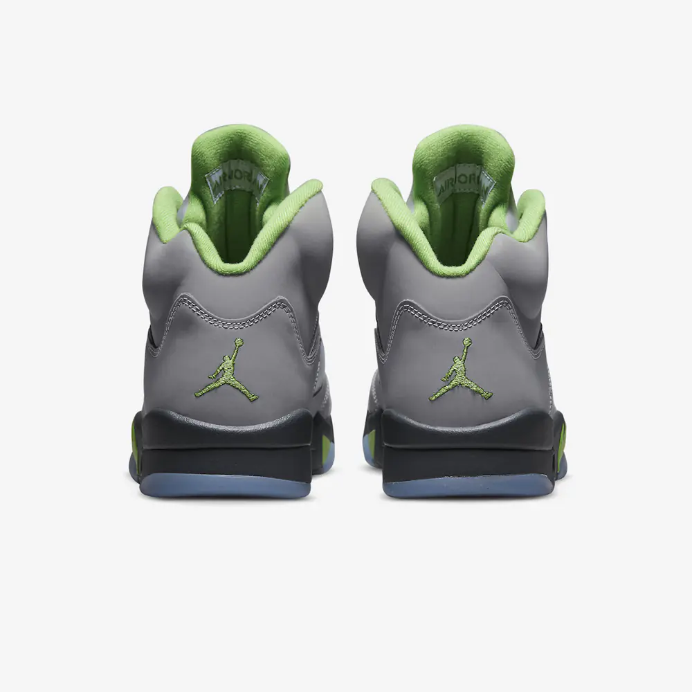 The Air Jordan 5 “Green Bean 2022” brings back the 2006 colorway with a reflective finish that shines when exposed to light in the dark. This May 2022 release of the Jordan 5 “Green Bean” colorway is nearly identical to the original version of the sneaker. The shoe’s grey synthetic upper is treated with a reflective finish that is supposedly inspired by the original sketch of the Jordan 5 by Tinker Hatfield. According to rumors, Hatfield sought to design the Air Jordan 5 with a fully reflective upper, but ultimately scrapped the idea prior to the shoe’s production in 1990. As for the rest of the modern “Green Bean’s” design, bright neon green accents appear on the interior lining, on the sharktooth detailing on the midsole, and on the embroidered Jumpman on the silver reflective tongue and on the heel. The shoe features translucent mesh on the sides and on the lower tongue. Release date: May 28, 2022.