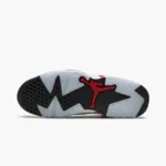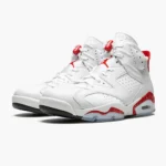 The Air Jordan 6 “Red Oreo” is a colorway of Michael Jordan’s sixth signature shoe that unofficially nods to the popular snack of the same nickname. Jordan Brand’s “Oreo” color story continues on the Jordan 6 “Red Oreo,” which was released in June 2022 as part of its Summer 2022 release cycle. The “Red Oreo,” specifically, seemingly shows love to the Red Velvet Oreo flavor, sans any official Oreo branding or likeliness. The upper features a white leather construction that gives way to contrasting University Red accents. The fiery shade of red is found on the midsole and spoiler, both with white speckle detailing, and on the embroidered Jumpman on the lace shroud and lace toggle. A tonal Jumpman logo is stitched onto the heel. Release date: June 4, 2022
