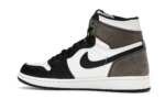 The upper of the Jordan 1 High Dark Mocha features a Sail leather base with black leather surrounding the toe box and Mocha suede on the heel and ankle. A black leather Swoosh, Jordan Wings logo on the ankle, and Nike Air branding on the tongue pays homage to branding that can be found on the original 1985 Jordan 1. A Sail midsole and black outsole complete this Black Toe design.