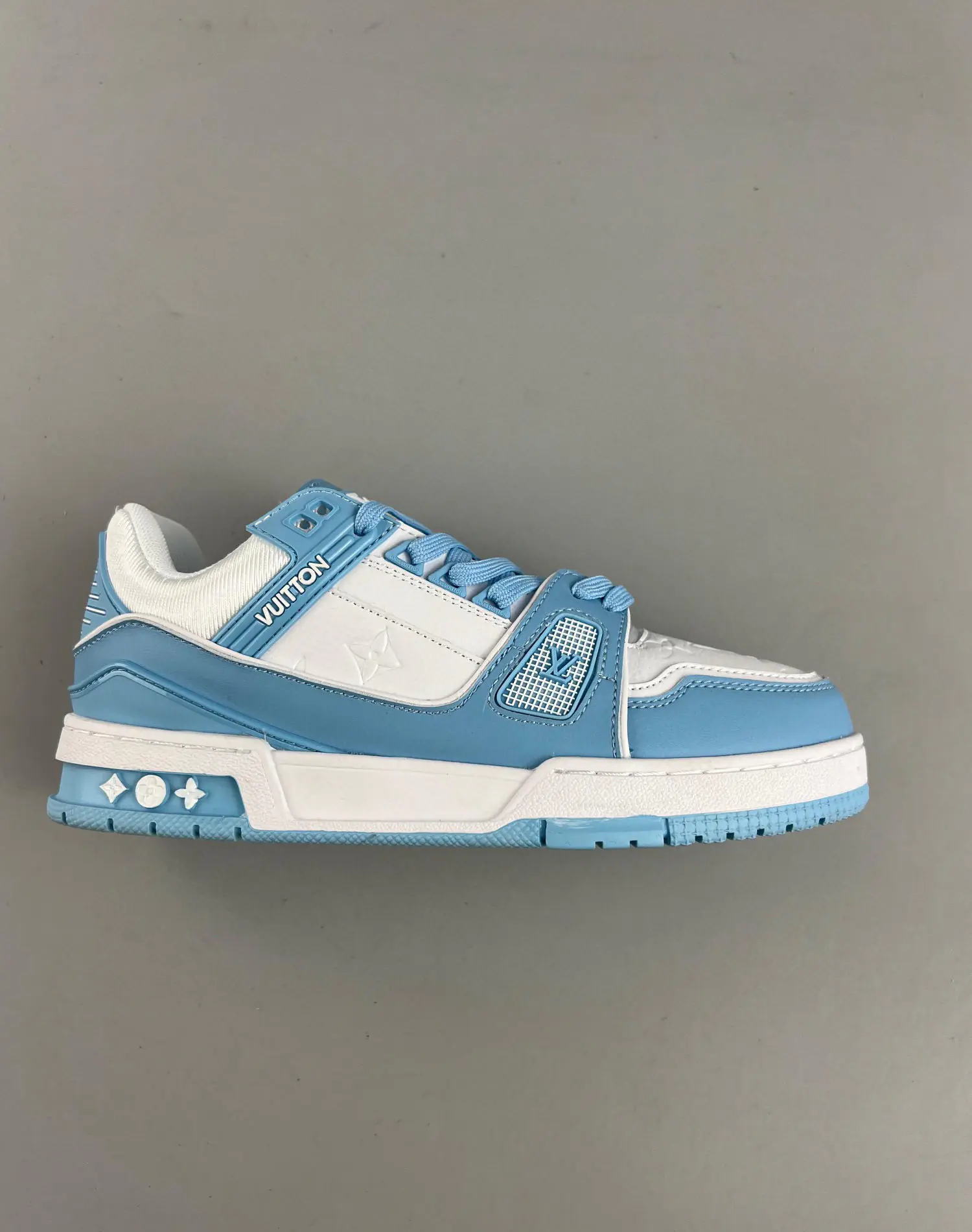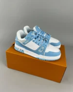 The Louis Vuitton LV Trainer Monogram Denim White Blue is a stylish and versatile sneaker that combines the iconic LV monogram with a denim and leather construction. The white and blue colorway adds a pop of color to any outfit, making it perfect for both casual and formal occasions. Crafted from premium materials, the LV Trainer Monogram Denim White Blue features a denim upper with leather accents, a rubber outsole for traction and durability, and a cushioned insole for comfort. The sneaker also boasts a lace-up closure and a padded collar for a secure and snug fit. Released on April 1st, 2022, the LV Trainer Monogram Denim White Blue retails for $1220. It is available in a range of sizes to fit any foot size and shape. Something we love about the Louis Vuitton LV Trainer Monogram Denim White Blue is its unique blend of materials and colors, which make it stand out from other sneakers on the market. Our experts think the best features of this sneaker are its premium construction, comfortable fit, and eye-catching design. Whether you’re dressing up or down, the LV Trainer Monogram Denim White Blue is a must-have addition to any sneaker collection.